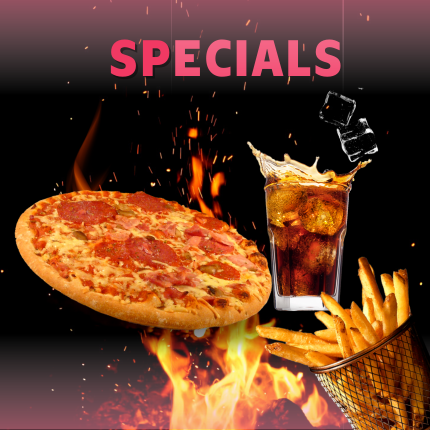 Emma's Family Special - One Medium Pizza, Medium Fries and 2 cans of soft drink