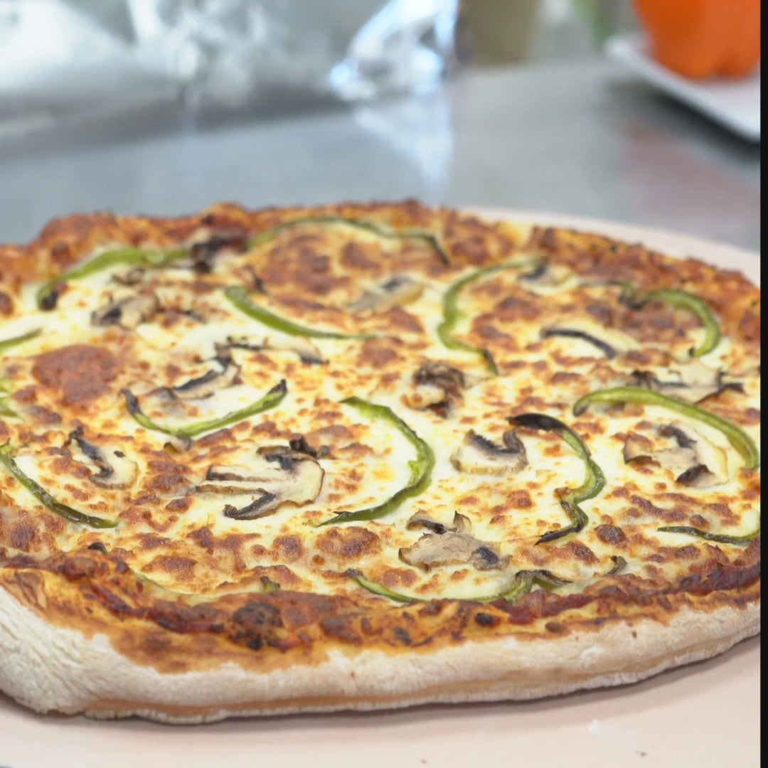 Laissez-vous tenter par la pizza toute garnie signature BIGpopapizza ! Chaque part déborde de saveurs grâce à notre savoureux mélange de pepperoni, de champignons succulents, de poivrons croquants et d'oignons aromatiques. Notre croûte dorée signature, parfaitement complétée par de la mozzarella fondue et une sauce tomate onctueuse, assure une parfaite cohésion. BIGpopapizza ne se contente pas de faire des pizzas; nous créons des expériences. En choisissant notre pizza toute garnie, vous ne vous contentez pas d'un repas; vous embarquez pour un voyage culinaire. Parfaite à partager ou à savourer en solo. Commandez la vôtre dès maintenant et goûtez à la différence BIGpopapizza !